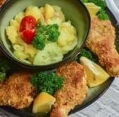 Sočne ocvrte piščančje krače s krompirjevo solato