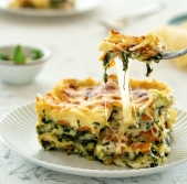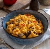 Slastne testenine s kozicami, zelenjavo in špinačo