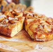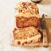 Kolač iz bučk in ameriških orehov z javorovim prelivom