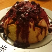 Puding s kokosom in vrtnicami ter prelivom iz ribezovega sirupa