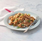 Rižota z gobami, slanino in piščancem