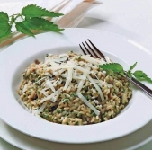 Rižota s koprivami in jurčki