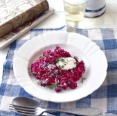 Kremna rižota z rdečo peso