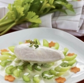 Piščančje prsi z rizlingovo omako in stebelno zeleno