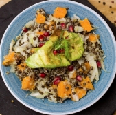 Osvežujoča solata z lečo, kvinojo in avokadom