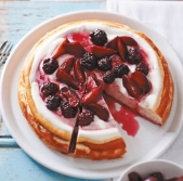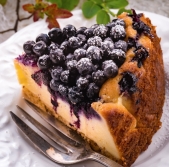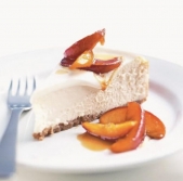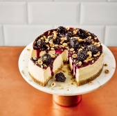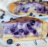 Limonov cheesecake s pečenimi slivami in robidnicami