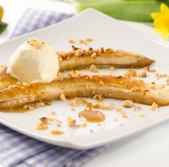Bananina zvrnjena pita s soljenim karamelom in sladoledom