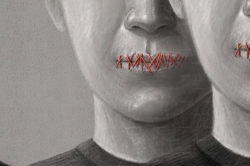 Cenzura je sama po sebi nasilna. Preprečuje vam, da bi povedali, kar želite povedati. Fizična uveljavitev tega bi pomenila prepoved ust – kot v zaporu, gulagu ali koncentracijskem taborišču.