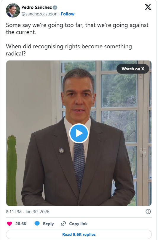 Express poroča: Dovoljenja bodo obnovljiva, pot do polnega državljanstva pa bo po 10 letih – ali prej za migrante iz Latinske Amerike in priznane begunce. Kritiki opozarjajo, da bo ta poteza pospešila "invazijo", poglobila stanovanjsko krizo in preobremenila javne storitve. Ker krhka koalicija premierja Pedra Sancheza nima parlamentarne večine, bo reforma sprejeta s kraljevim odlokom, s čimer se bo zaobšla zakonodaja, ki je zastala v razdeljenem španskem zakonodajnem telesu.