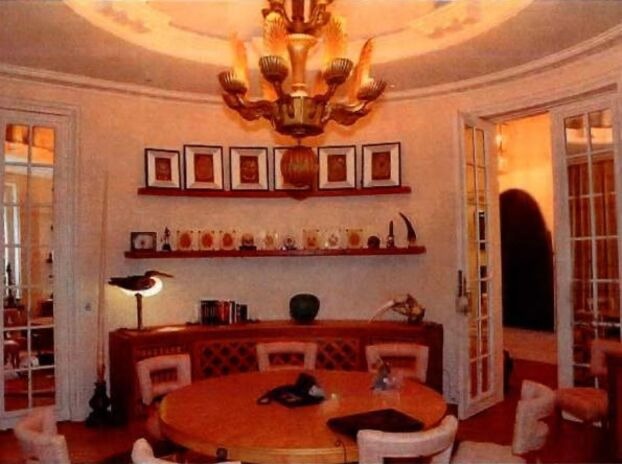 Epsteinovo zlovešče stanovanje, kupljeno leta 2001, je bilo okrašeno v odtenkih rdeče, oranžne in roza, z zmajevimi tapetami v "kitajski sobi", rdečo usnjeno omaro, "rotundo" iz medvedje kože s pogledom na Slavolok zmage in stenami, prekritimi s fotografijami golih žensk, kažejo grozljive slike.