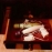 Uokvirjena fotografija prikazuje moškega, ki sedi z dvema ženskama zgoraj brez, z razmršenimi prsmi, v rdečem in oranžnem okvirju. Druga uokvirjena slika prikazuje pokojnega pedofila, ki leži zgoraj brez poleg dveh žensk.