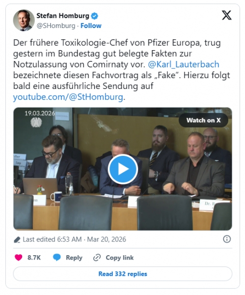 Kot je bilo pričakovati, je predavanje sprožilo ogorčenje med skeptiki glede koronavirusa. Nekdanji zvezni minister za zdravje Karl Lauterbach je izjave znanega strokovnjaka in žvižgača preprosto označil za "lažne". Stefan Homburg je pojav dokumentiral in napovedal podrobno analizo. Stari vzorec se nadaljuje: tisti, ki govorijo neprijetne resnice, so diskreditirani, namesto da bi se dejstva objektivno preučila.